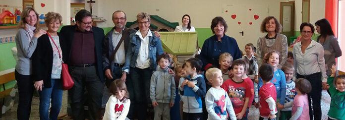 Alla consegna «ufficiale» erano presenti, oltre alle maestre della scuola dell’Infanzia con i piccoli alunni, Angela Nicoletto, presidente dell’Associazione «Il mare di Filippo», il presidente del consorzio Solco Antonio Buzzi, la presidente della cooperativa Progetto Crescita Francesca Battistini e la coordinatrice della scuola Cinzia Arrigoni.
