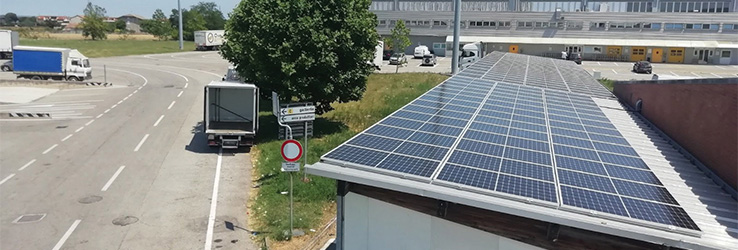 Nella foto un’area all’interno del Caar di Rimini. L’impianto fotovoltaico in primo piano è stato realizzato da Cofmo